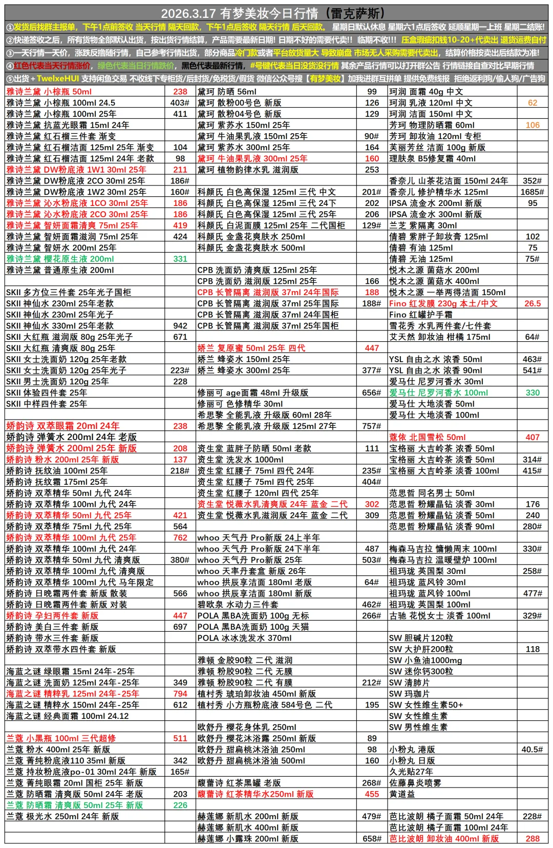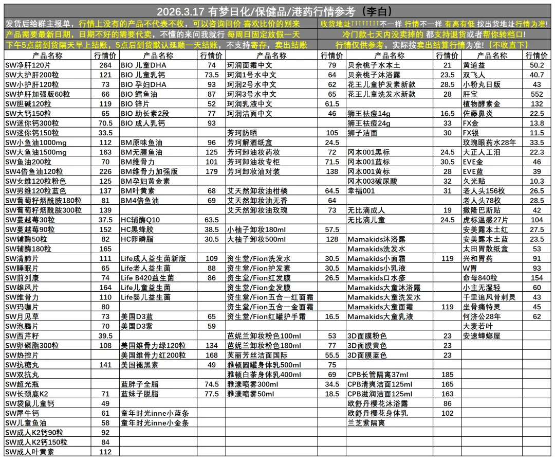 >2026.3.17有梦(美妆)收货行情更新