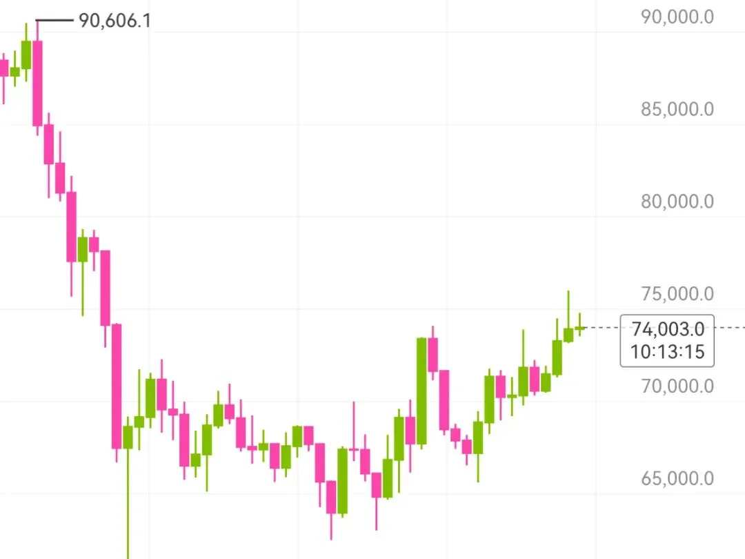 BTC短期内走出三连阳,价格回到7万4以上,那这波行情后续还是有冲击8万的可能,这只是一波短中期的向上回冲总体幅度不会那么大。