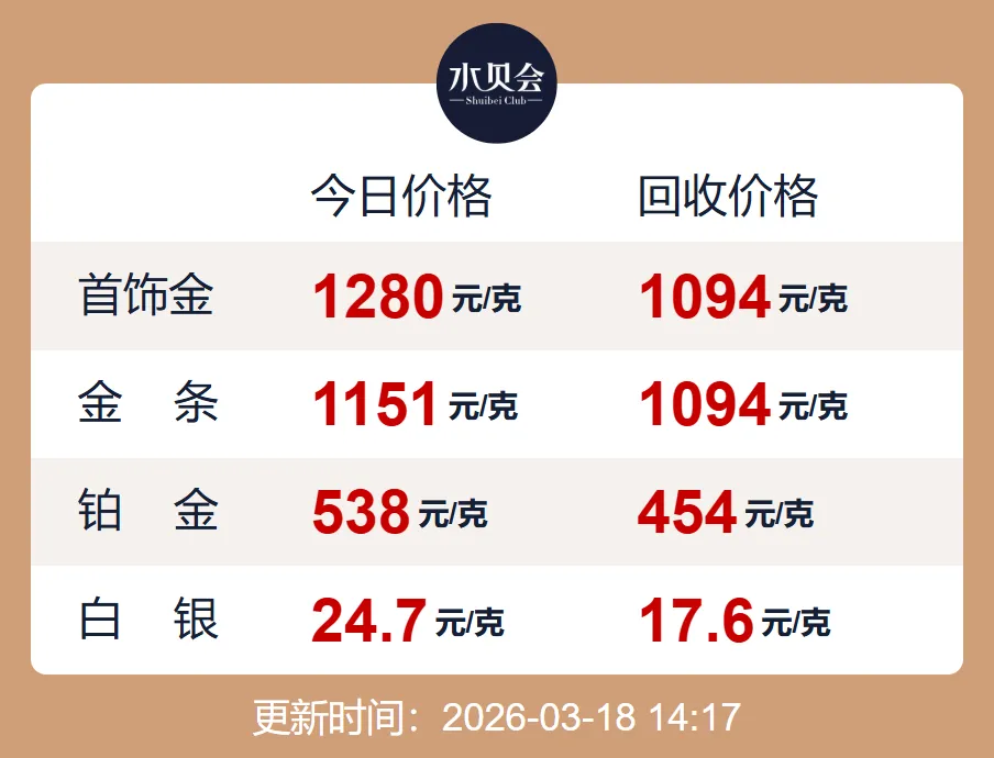 今日金价行情,今日金价查询表( 2026年03月18日)