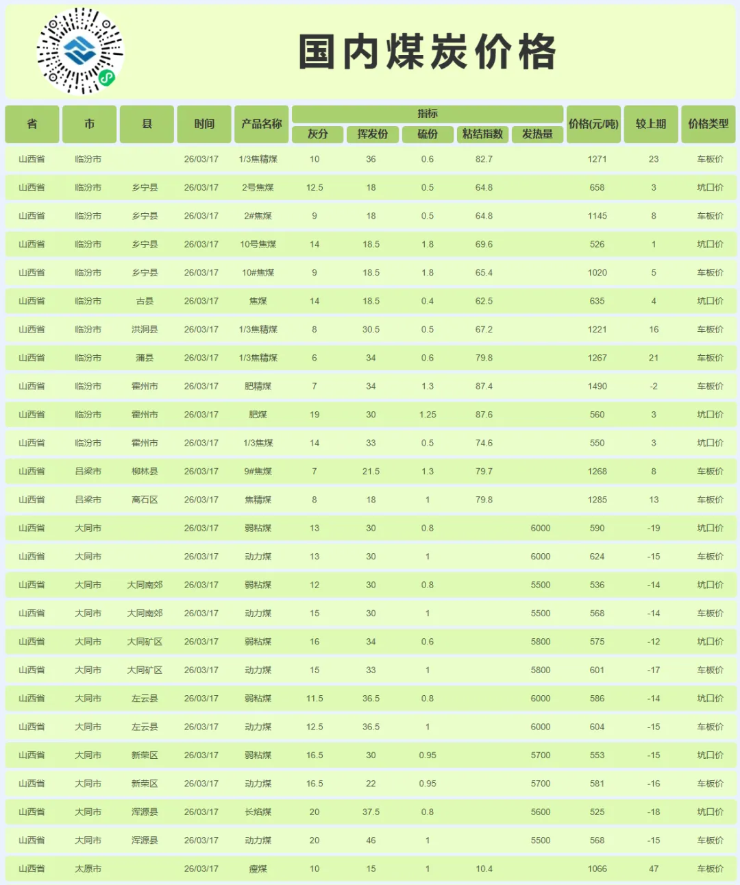值得注意的是,市场呈现出“内外分化、产地与港口背离”的复杂特征。国际市场因地缘冲突升级、印尼斋月及减产政策影响,煤炭供应偏紧、海运费上涨,导致进口煤到岸成本高企,与内贸煤形成严重价格倒挂(截至3月13日,CCI进口5500大卡煤到华南港口价格较内贸同品质煤倒挂47元/吨)。这理论上为内贸煤价提供了坚实的成本底部支撑。然而,在巨大的国内库存压力面前,这种“远水难解近渴”的支撑效应显得十分有限,进口通道近乎“冻结”。与此同时,产地市场情绪却较前略有缓和,陕西榆林地区受化工等终端客户需求好转带动,到矿拉运车辆增多,部分煤矿价格出现5-20元/吨的小幅探涨。这种产地微涨、港口阴跌的背离,恰恰反映了当前市场“弱现实”与“成本及预期支撑”之间的激烈博弈。