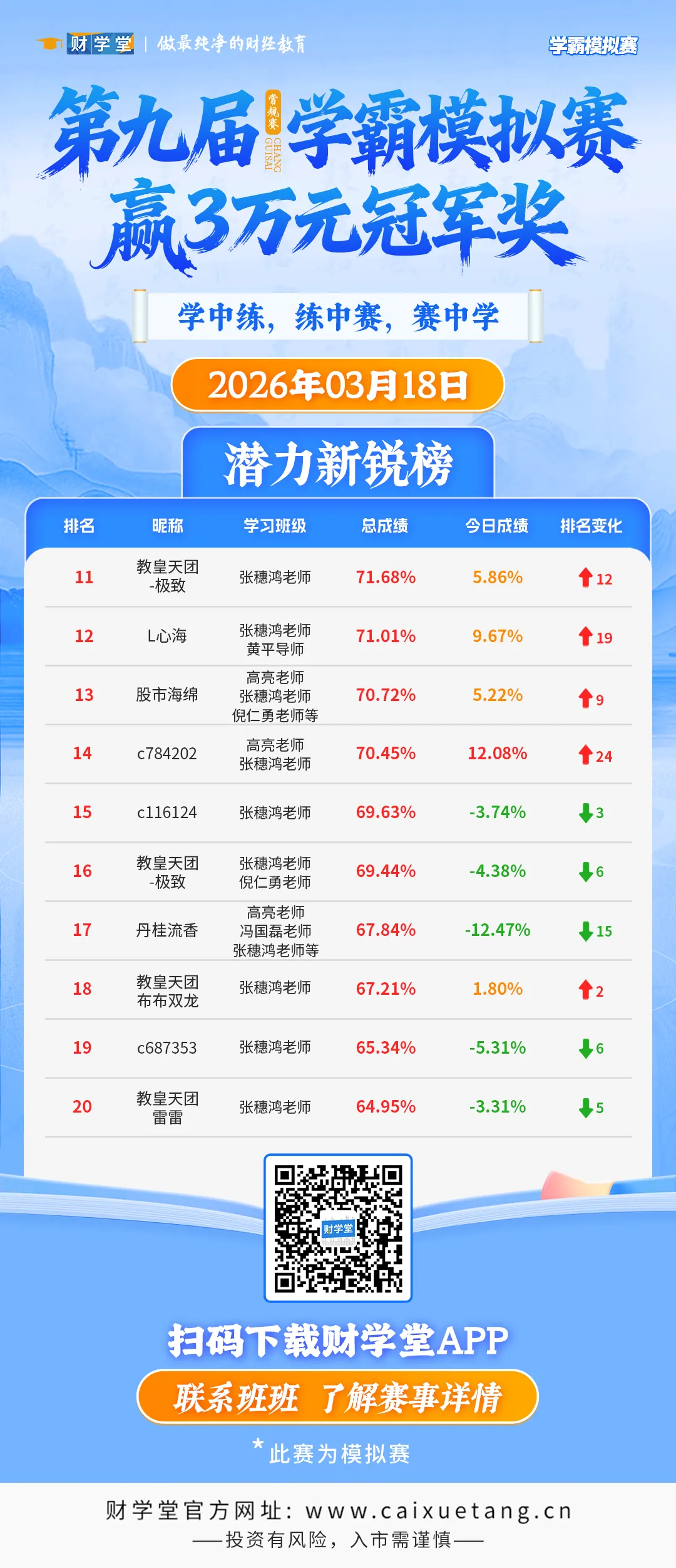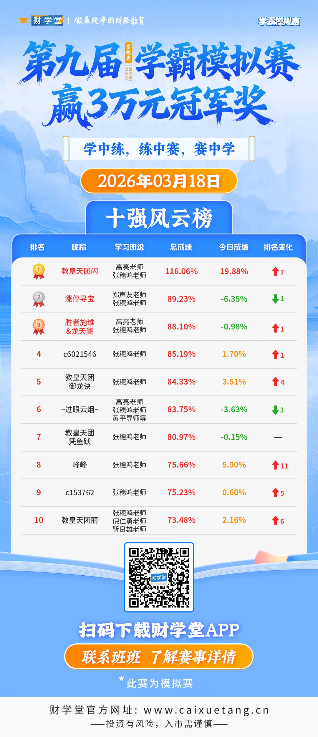 第九届“学霸模拟赛”连续几天的调整之后,今天市场终于“缓了一口气”。盘面整体有所回暖,但这种回暖并不算激进,给希望,但不给太多确定性。也正是在这种阶段,很多人的操作开始出现分歧:有人选择跟随节奏,有人开始频繁出手,也有人选择继续观望。