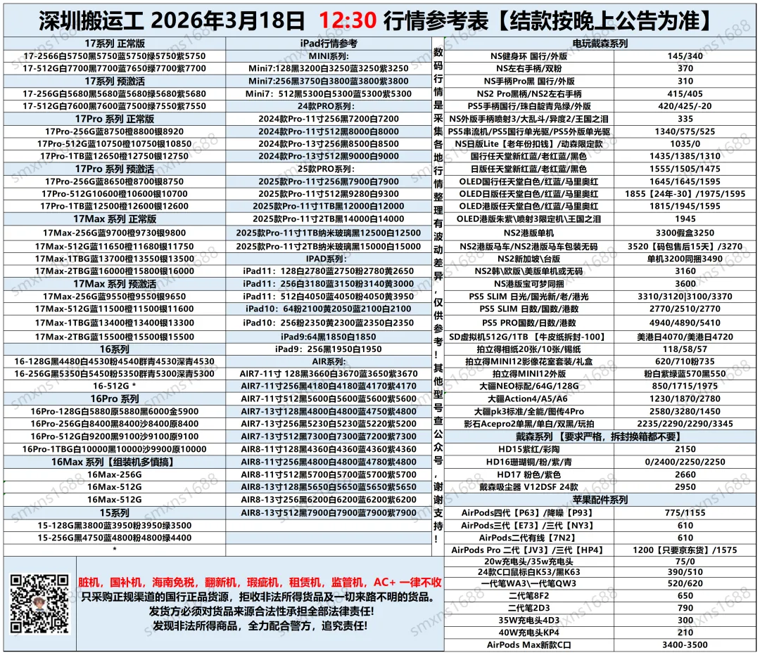 市场行情时刻波动,不一定全部更新到位,报价仅供出货参考。每晚会群公告公布实际结算价。我们是代卖模式,非定价接货,非咸鱼/顺丰上门打款。请知悉!感谢各位老板的信任与支持!