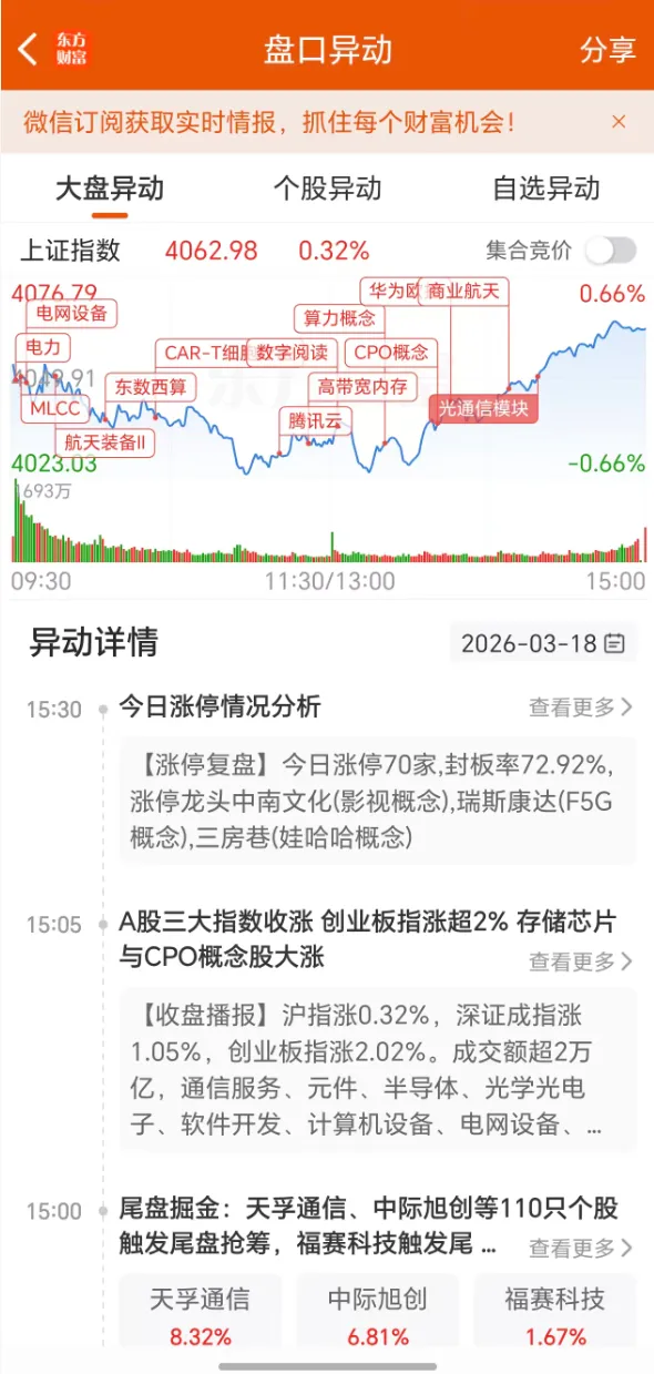 今日两市个股涨跌比为:1.94:1,涨停70家,跌停14家。板块异动上:14个板块异动活跃,科技类热点增加,个股赚钱效应好转。