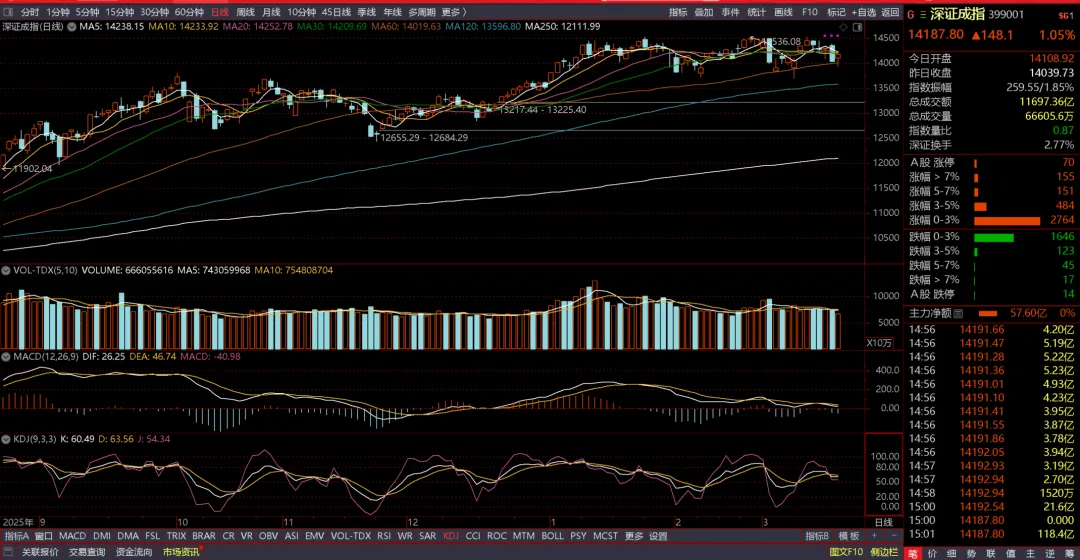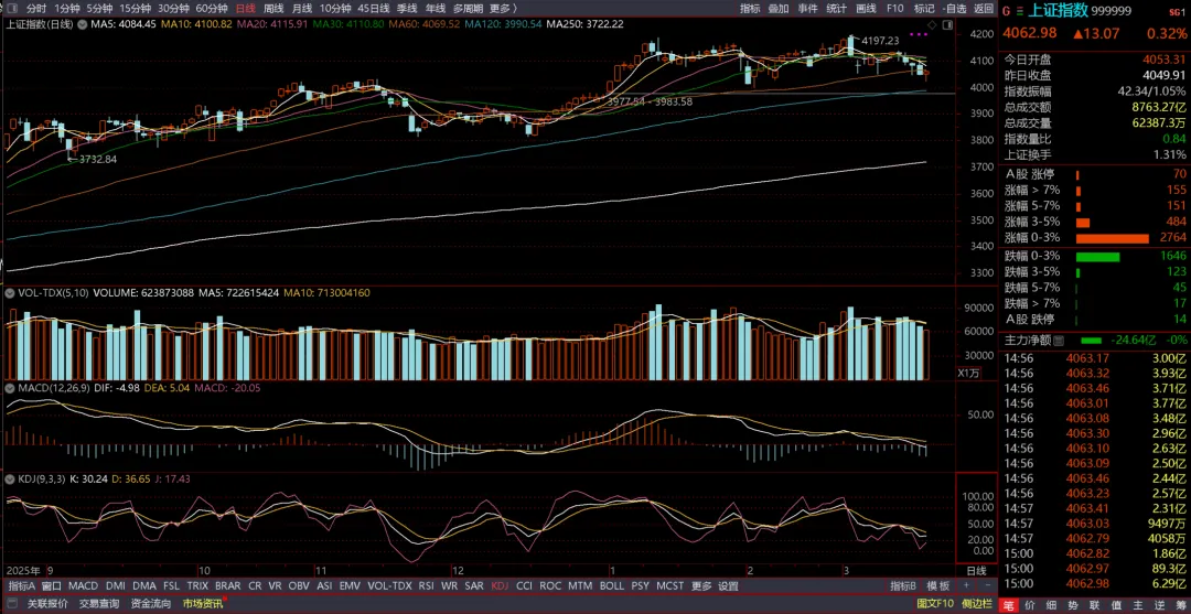 从涨跌幅榜看:通信设备、算力租赁、5G概念、数字水印、CPO概念位居涨幅前五,种业、青海板块、宁夏板块、石油、酒店餐饮位居跌幅前五。从资金驱动力看:数据中心、非周期股、5G概念、芯片、CPO概念位居净买入前五,周期股、破净资产、绿色电力、低市净率、近期新高位居净卖出前五。