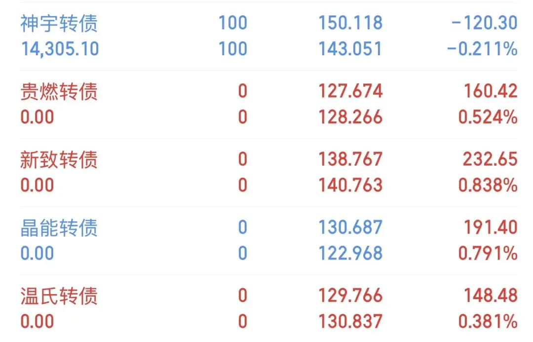 今日可转债指数上涨1.43%,可转债轮动账户上涨0.21%,盈利600元,目前持有1支转债,仓位5%。