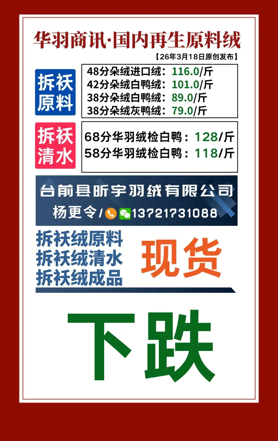 >356期 | 华羽商讯·今日再生收羽绒行情【20260318发布】