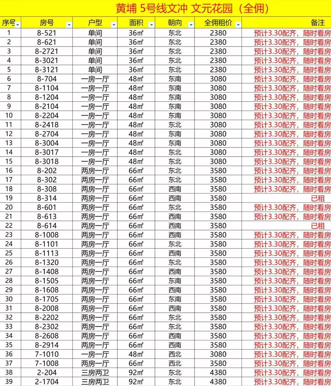 来源:文冲家园-租房群