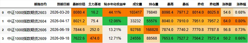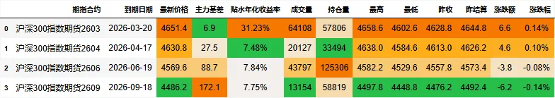 期指合约信息: