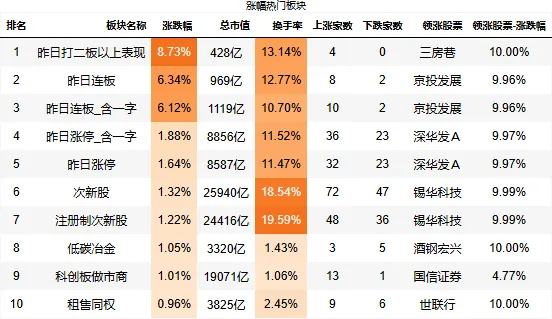 东方财富涨幅热门板块