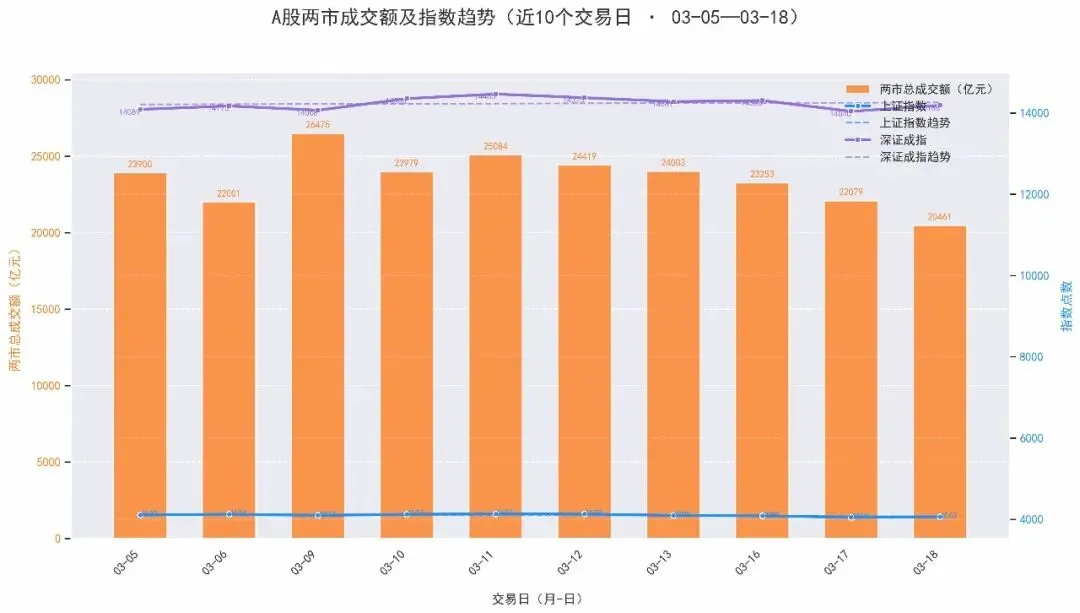 2026-03-18沪深两市成交额:20460.64亿