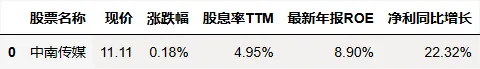 股息率个股筛选