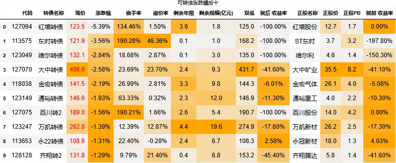 130以上高价转债涨幅中位值:1.49%