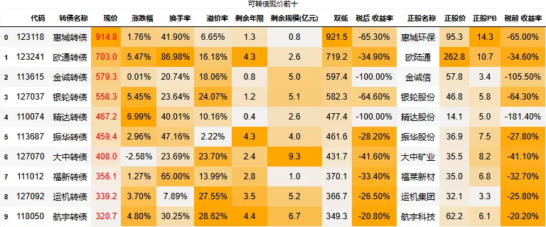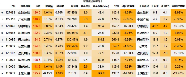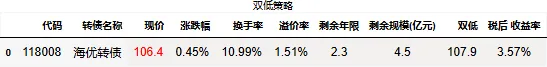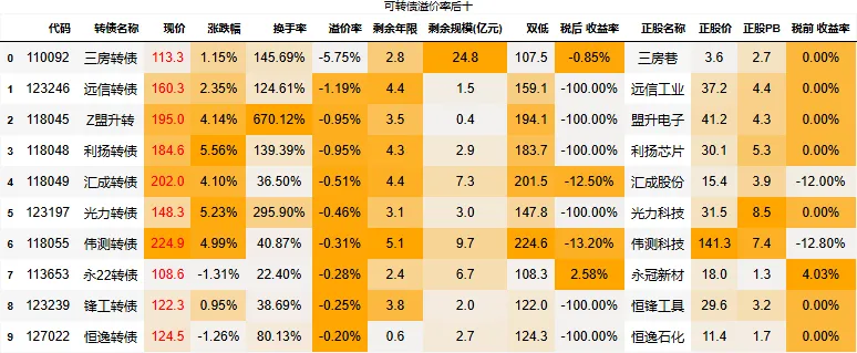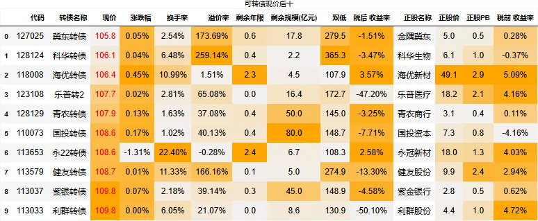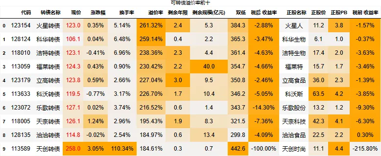 溢价率小于20的转债数量:109只