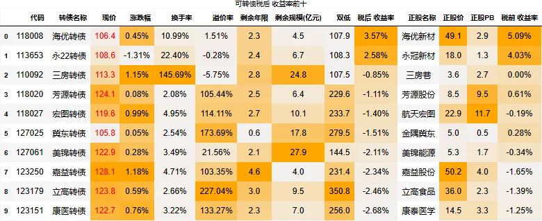 到期税后收益大于0的转债数量:2只
