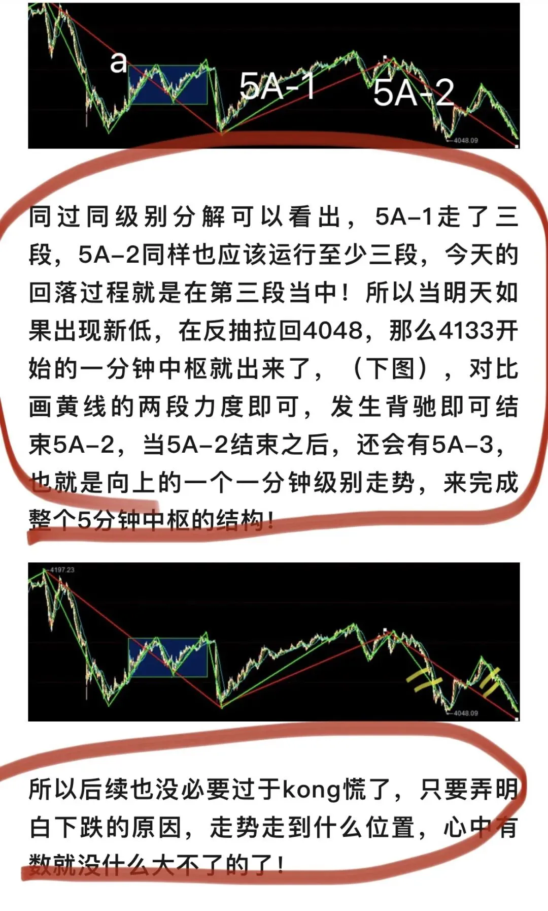 其实回看这段时间,走势一直都是在磨叽,每一个中枢都在扩展,无论大级别还是小级别都在扩展当中,所以对应的时间周期就慢。那么相对应的我前期画的走势,老朋友还记得吧?反弹还会有,只是稍稍慢了些。