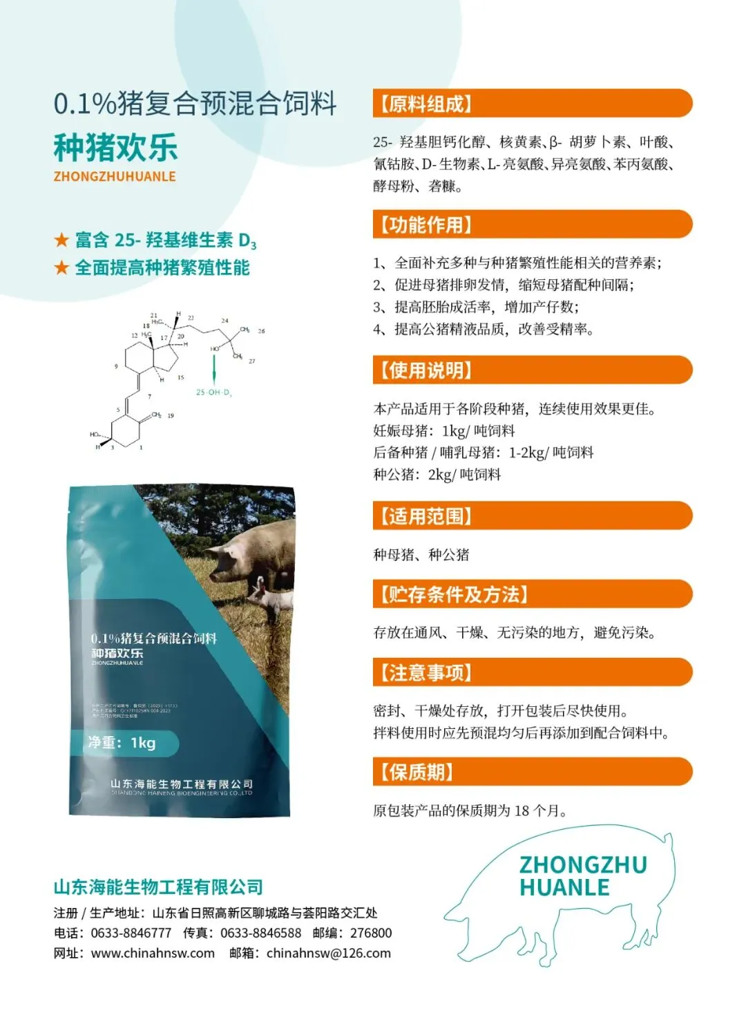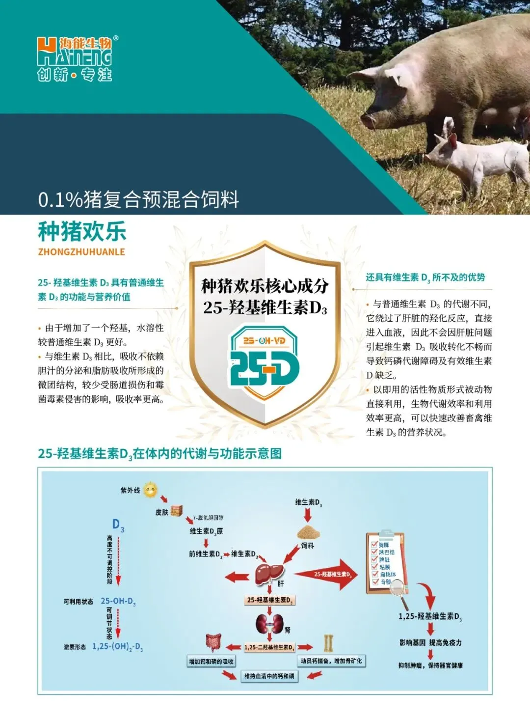 种猪欢乐,不仅提供母猪繁殖需要的关键繁殖营养,高剂量添加活性较高的25-羟基维生素D3,母猪使用后效果表现更快。