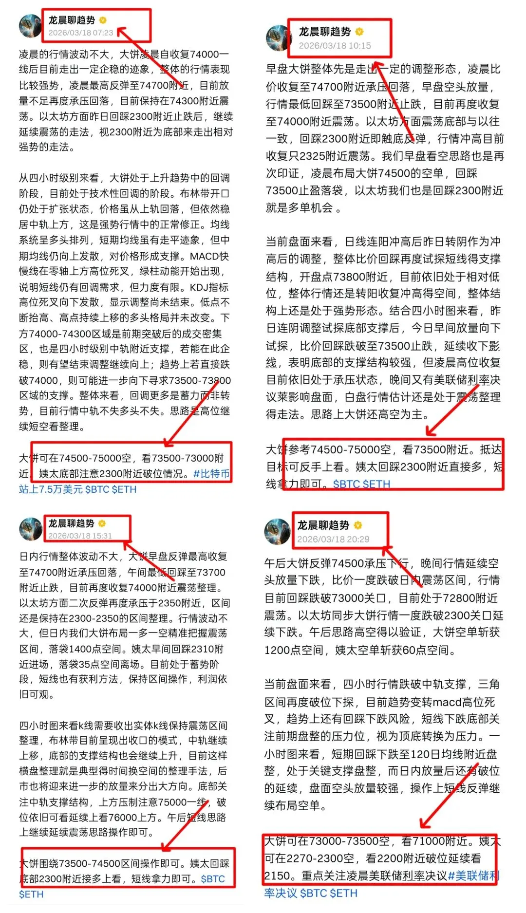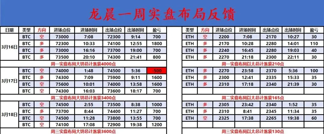 回顾日内行情,早盘大饼反弹至74700附近承压回落,日内保持蓄势震荡得以走法,整体呈现出区间的延续,于晚间迎来空头放量,随着比价跌破震荡底部后,空头放量比价也是一泻千里,目前行情回踩已跌至71000附近震荡盘整。以太坊方面,日内反抽2350承压回落,日内确定震荡区间有继续延续近期关键支撑2300关口,晚间同步大饼放量走低,目前行情已跌至2180附近震荡。近期不管是策略中还是直播中都是再给大家聊关键的支撑,盘整支撑压制叶均被我们精准预测,又有多少朋友跟上呢?近期以太坊2300关口破位提醒大家直接看2200下方,又有多少朋友记得呢?人总是要在失败中学会成长,就像很多时候你踏空了,而我们盈利了,你才知道我们的专业性。今日得实盘方面,大饼总计落袋3600点空间,姨太总计落袋130点空间,晚间空单目前依旧持有中。