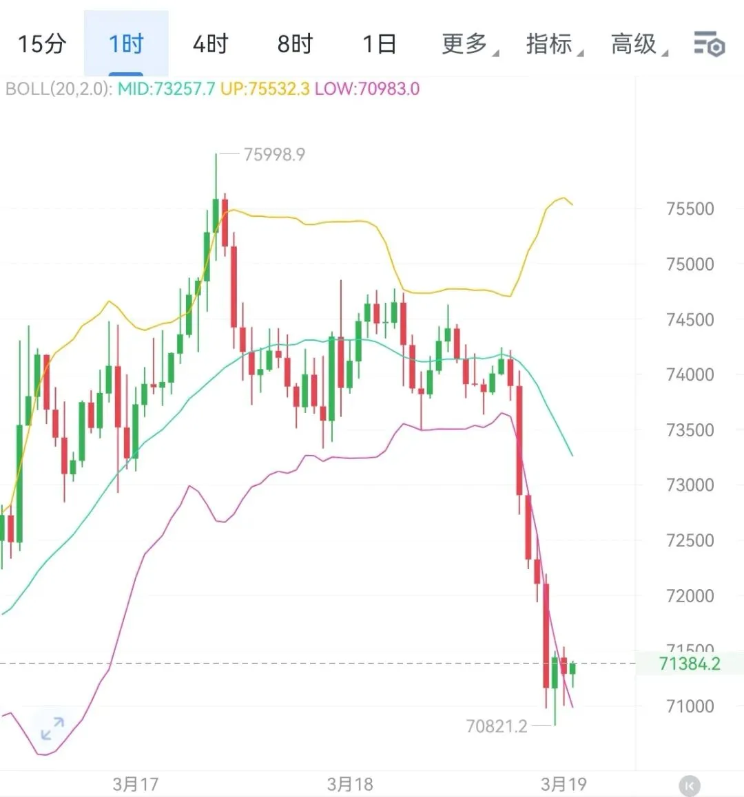 当前行情短期下行延续还在持续放量,底部还存在一定空间,晚间空单还在持有的朋友,跟上卓伟思路,带大家找底。近期这波反弹,是在周一开启,大饼从70500附近稳步拉伸,证明此阶段,是有明显的底部支撑的,周末阶段的吸筹也是在此位置,因此短期的底我们围绕这个位置展开。