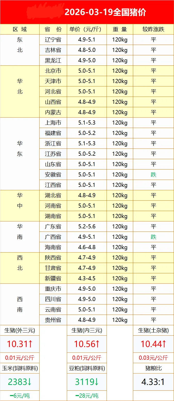 2026-3-19 全国鹌鹑蛋价格行情速递