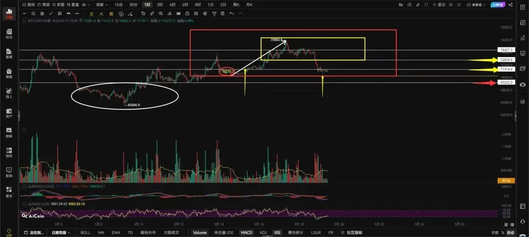 3.19日午间行情观点。$BTC 观点: