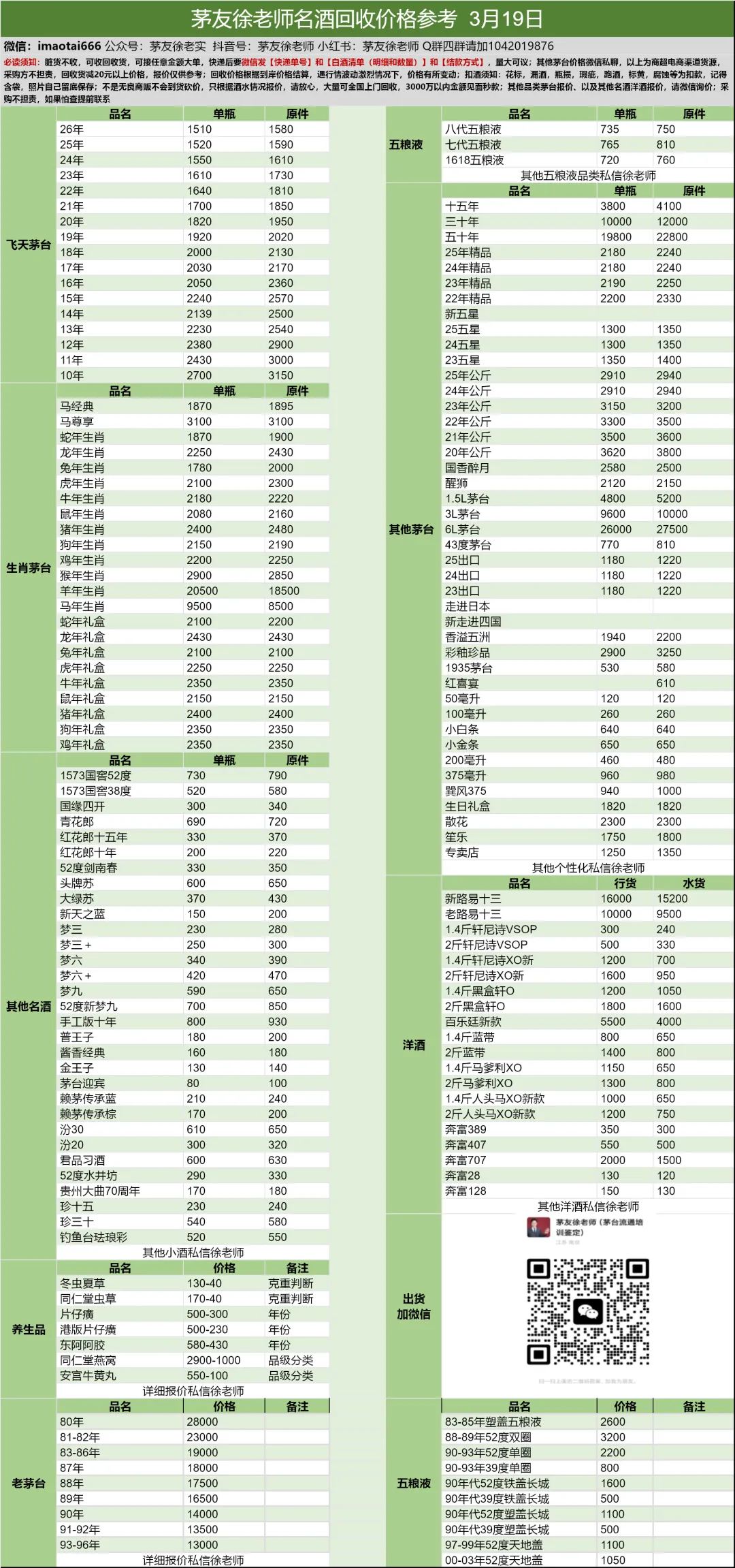 行情价:本公众号发布的价格是行情价格,是全国酒商调该品类茅台的价格,是零售价和回收价的基准价格。