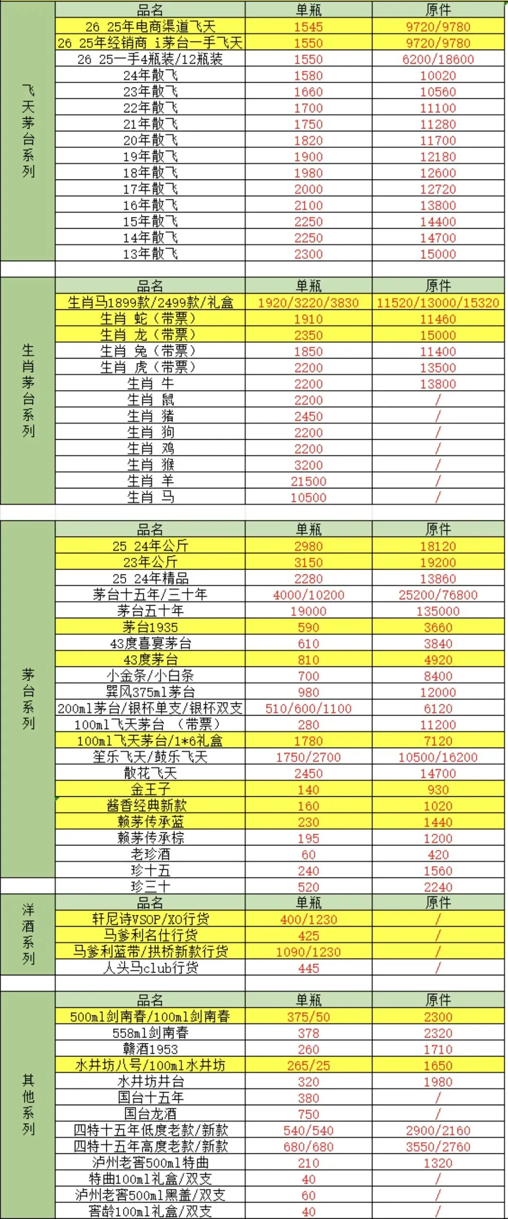 由于白酒飞天茅台价格存在实时变化、地区差异等原因,报价仅供参考。