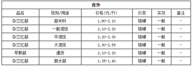 备注:以上价格采集自:杞县金杞大蒜交易市场