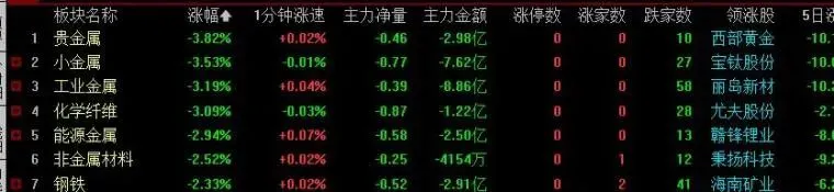 尾盘:油气和燃气加强,贵金属和能源金属跌幅加深