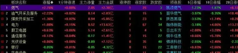 燃气发力到第一,贵金属跌幅加深