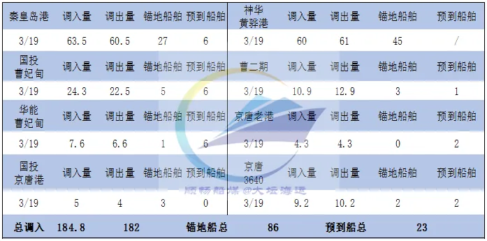 19日,环渤海港口锚地船舶数量86条,预到船舶23条(神华黄骅港除外)。