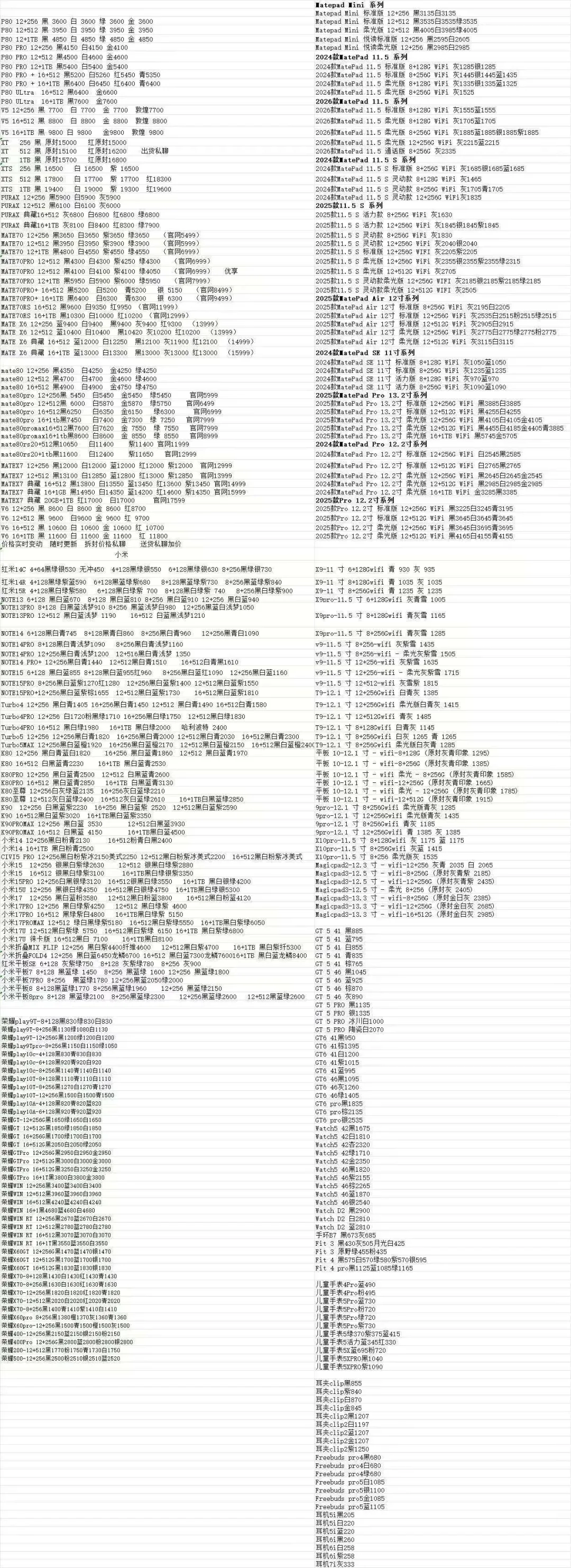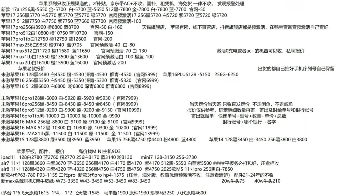 以上报价为深圳华强北参考收货价格,实际回收价格可能比报价差20-30元。