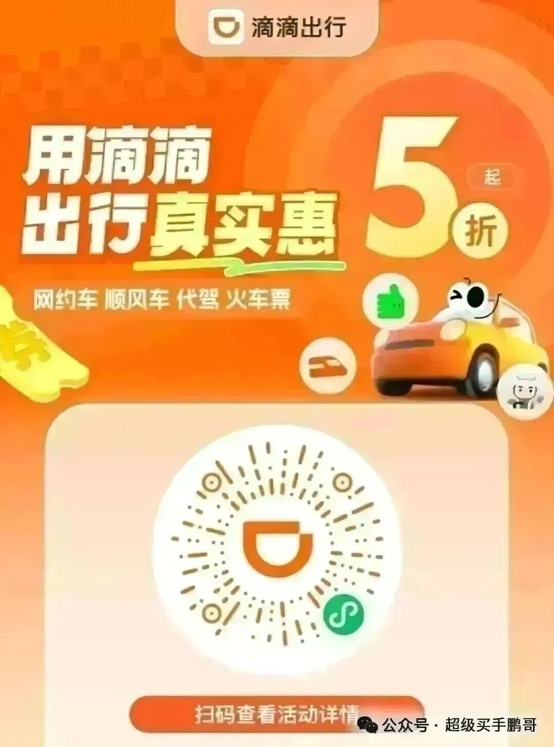 周五/周六/周日领领滴滴打车5折券,打车更划算!