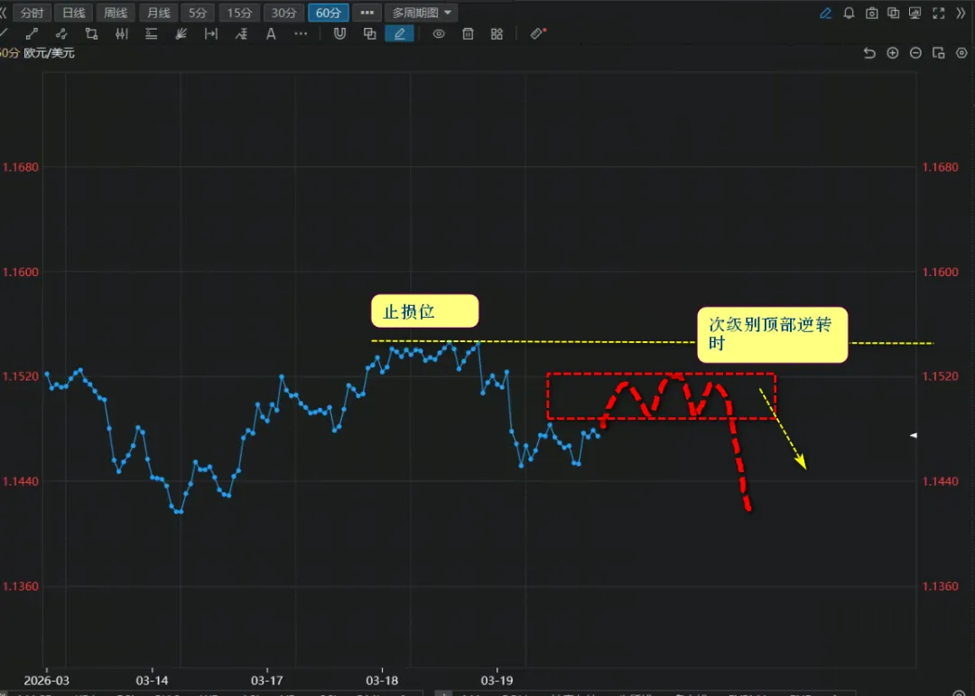 总结:反弹至 1.1480-1.1500 区域做空,止损 1.1530-1.1540,目标 1.1440→1.1400。