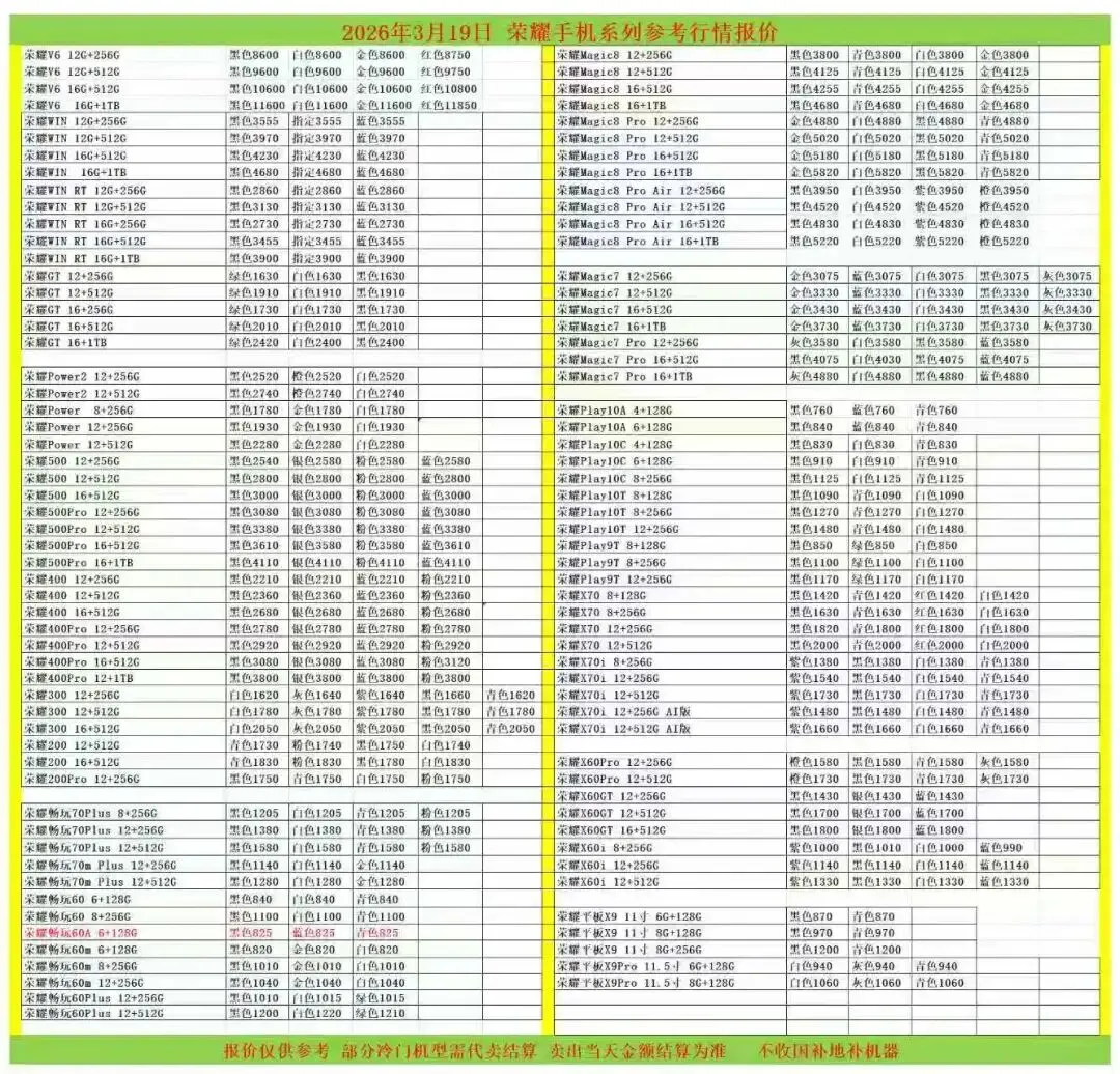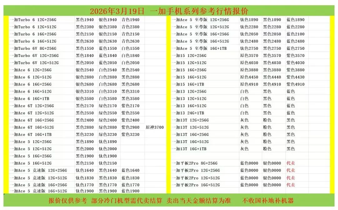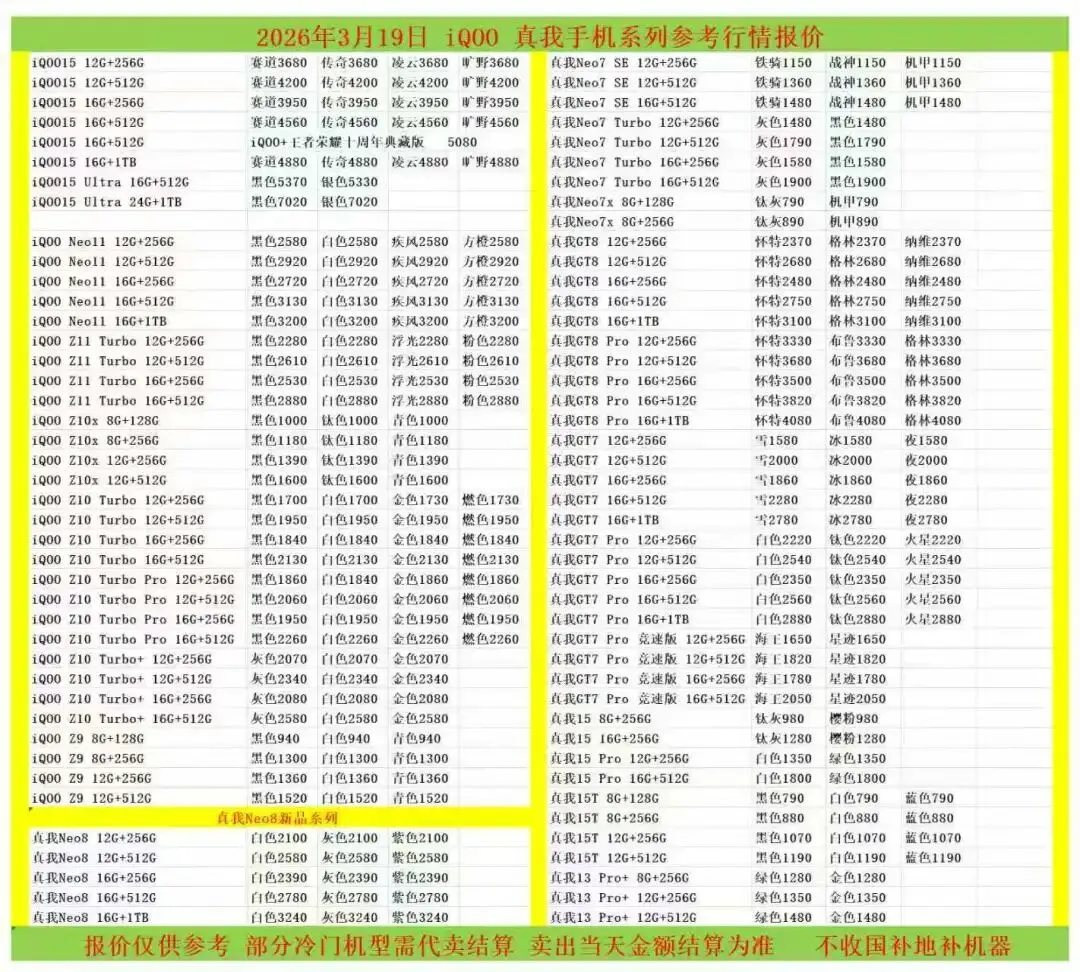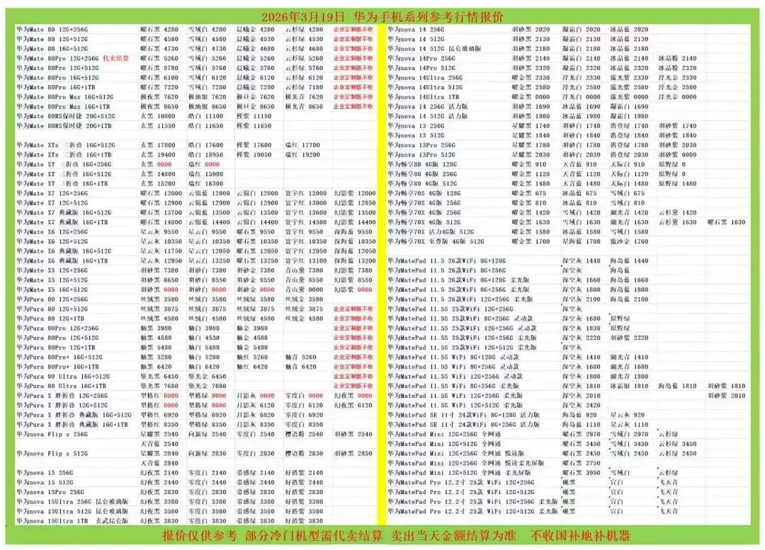 (1)二级市场为自由交易市场,价格实时波动,可能每个小时的卖价都不一样,此报价为华强北市场收货参考行情,实际结算价见公众号:鸟哥撸货数码结算价。