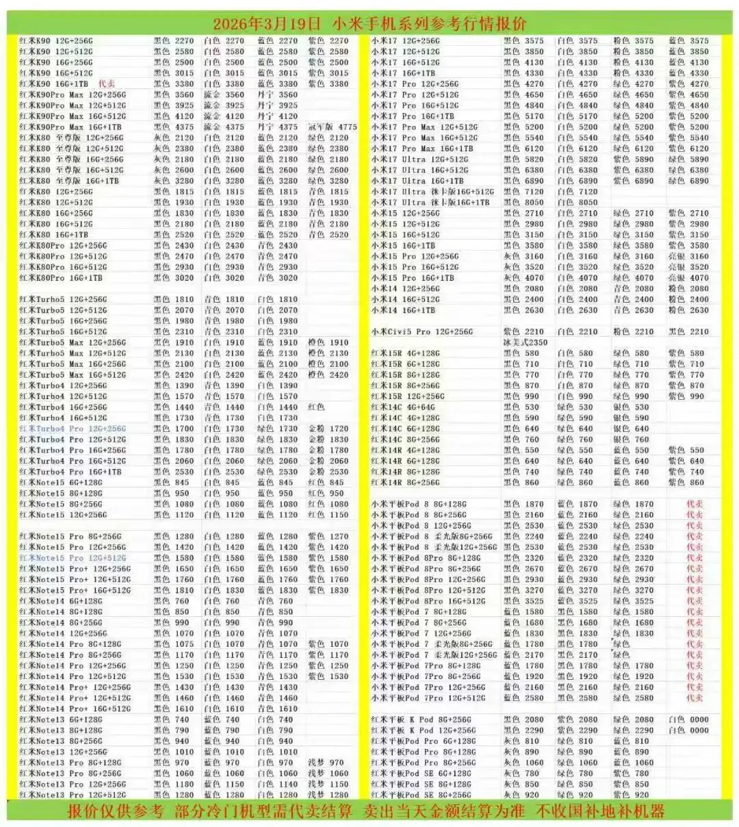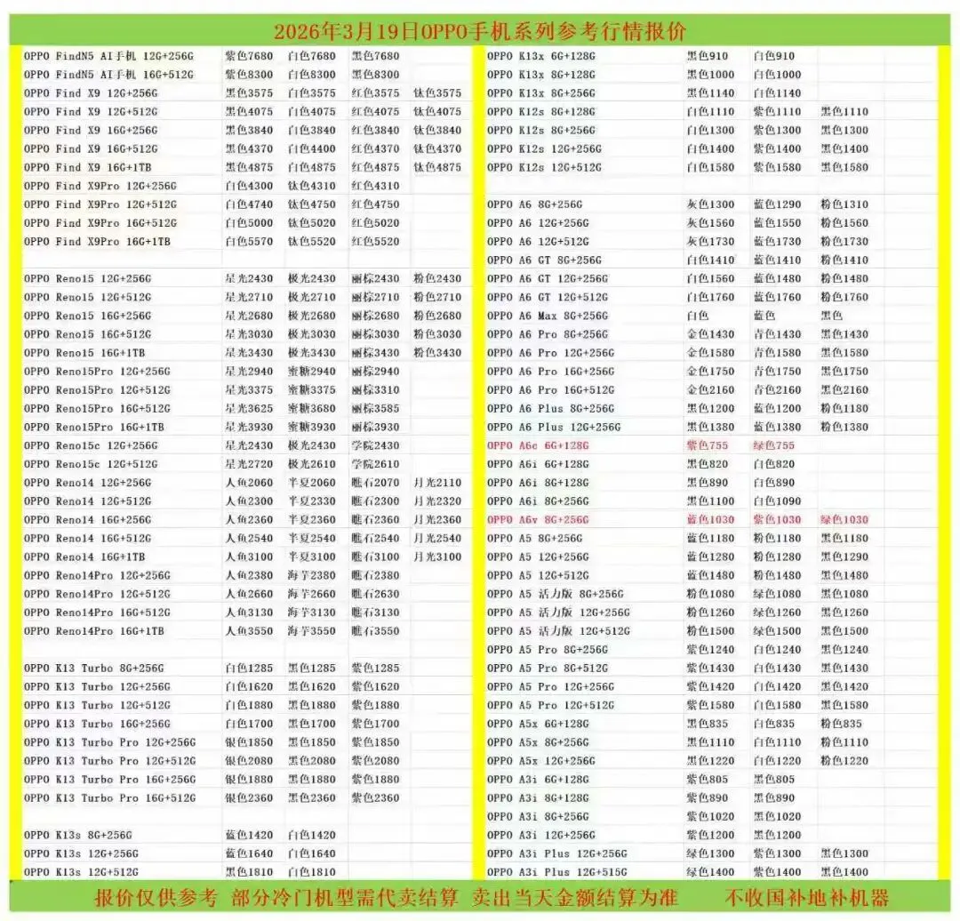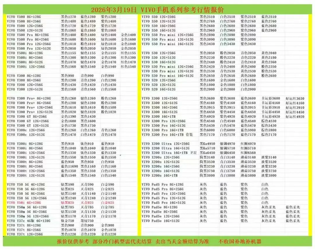 (1)二级市场为自由交易市场,价格实时波动,可能每个小时的卖价都不一样,此报价为华强北市场收货参考行情,实际结算价见公众号:鸟哥撸货数码结算价。