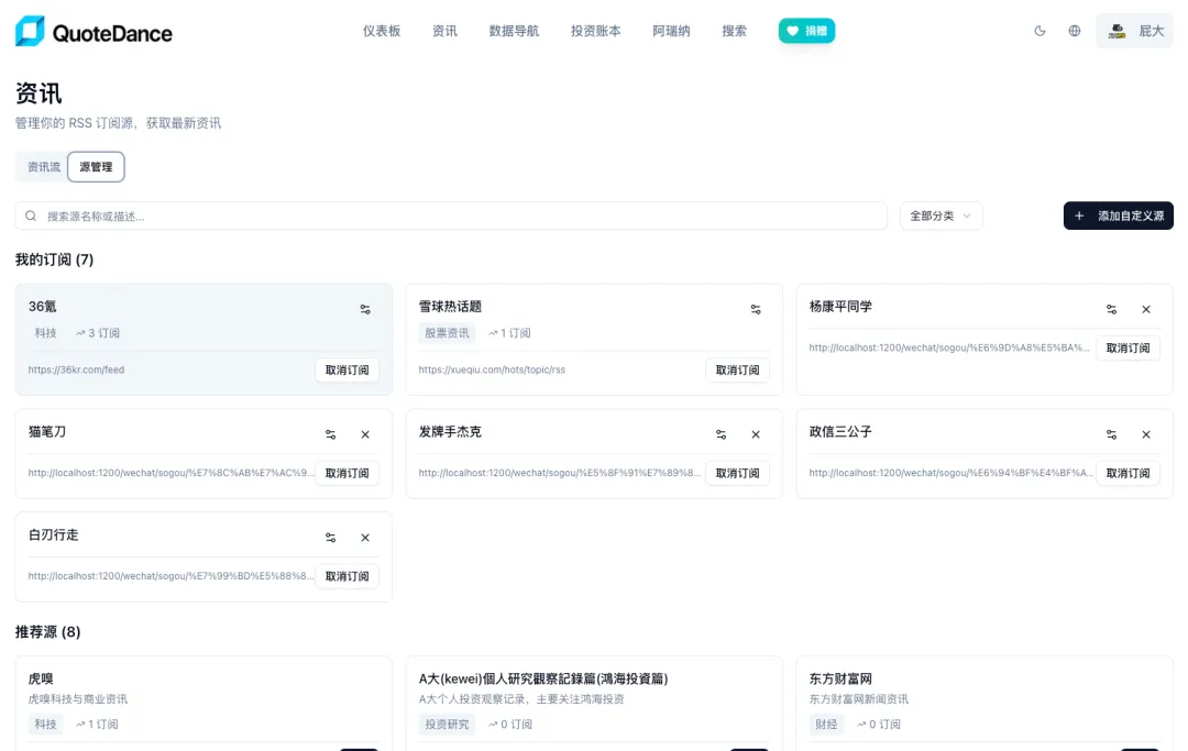 你的资讯源可以直接在quotedance 网站上维护