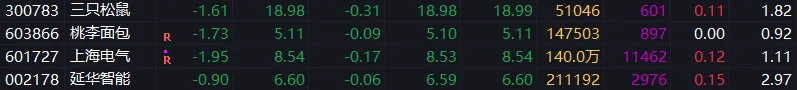 波段票:三只松鼠回调,耐心等。桃李面包回调,持有。上海电气回调,和指数走势关联太密切了,先拿着。延华智能持有。