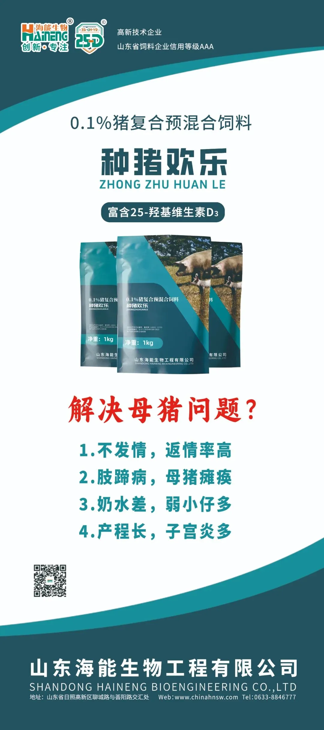 种猪欢乐,由海能公司根据母猪繁殖的核心需求,同时考虑饲料营养转化以及饲养水平,推出的一款性价比较高的种猪需求复合多维添加剂。