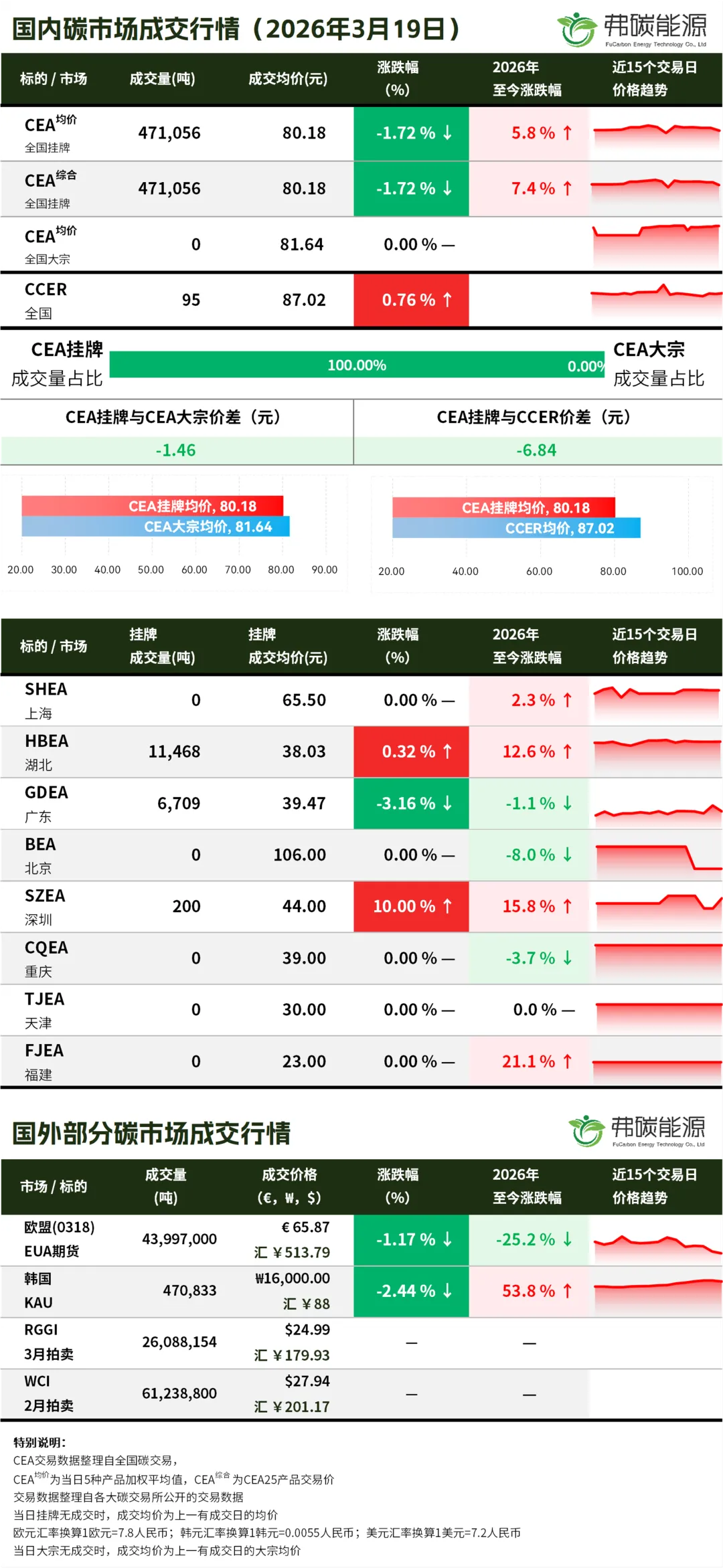 >碳市行情26.3.19 | CEA挂牌成交47.1万吨,成交均价下跌...