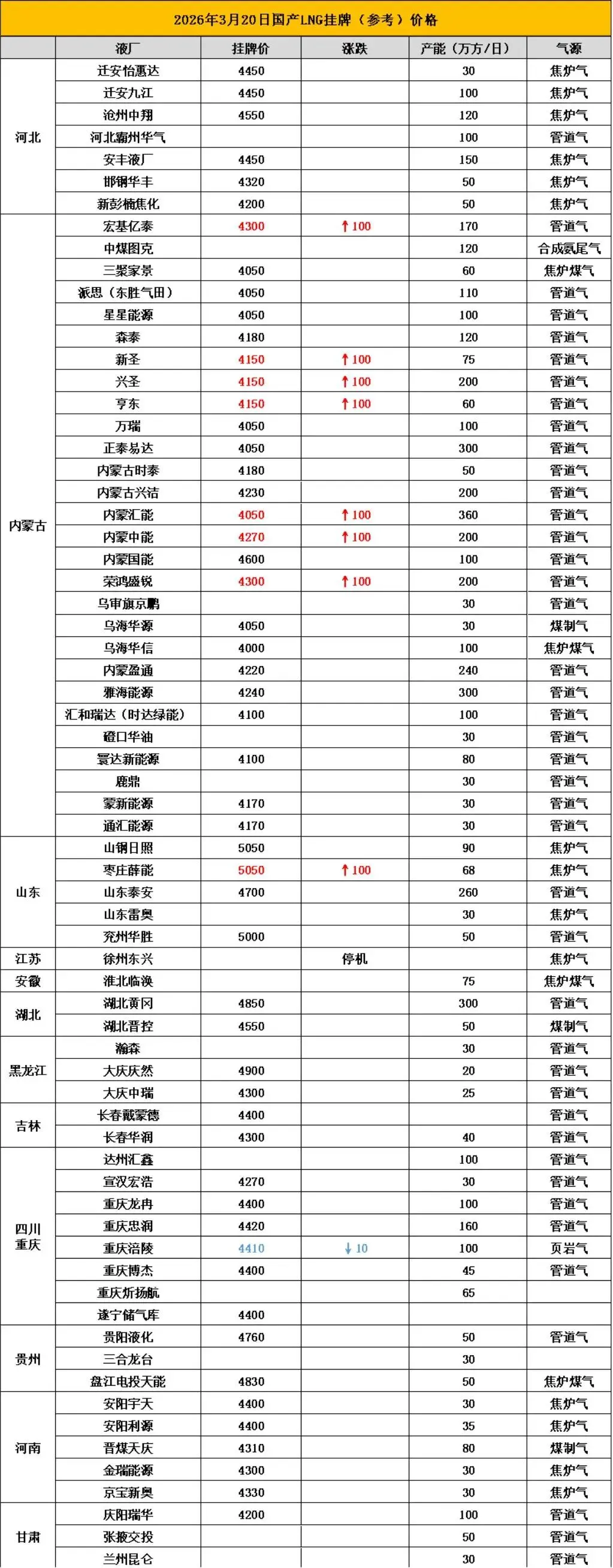 为了方便朋友们及时了解市场动态,掌握市场行情,把握市场机会。亿慧云天然气每天为大家提供行业新闻,国内LNG挂牌价格,本价格信息只做参考,具体提货价格请与工厂销售联系。(当天调价见底下留言)