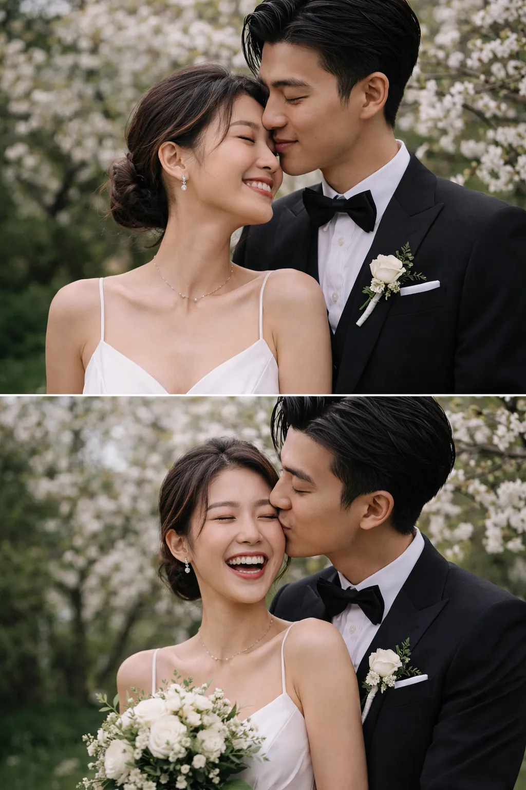 拍完我给他们看相机屏幕,新娘笑着说:“这张有点像市场突然拉升的感觉。”