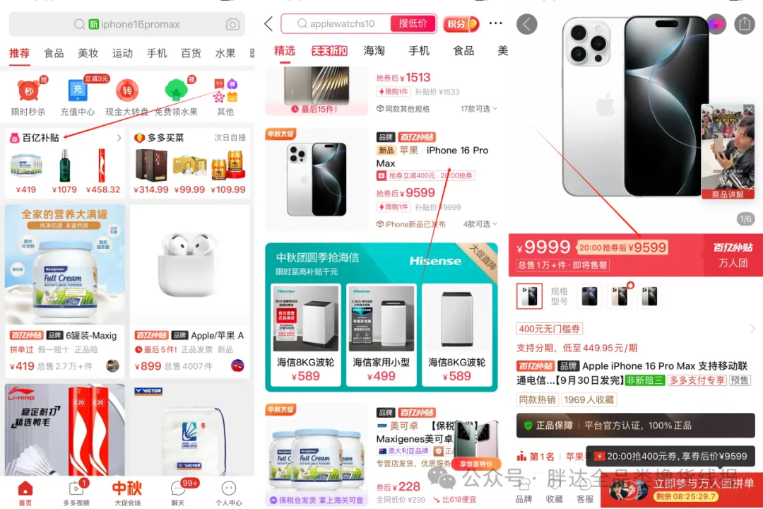 数码撸货范围包括:淘宝、京东、拼多多百亿补贴,抖音超值购以及快手大牌大补的各系列手机,这些平台都会不定时发放补贴手机,例如一台苹果手机的利润在200左右,每台手机90天限购一台,可以让亲朋好友帮忙下单,互帮互助,增进感情。