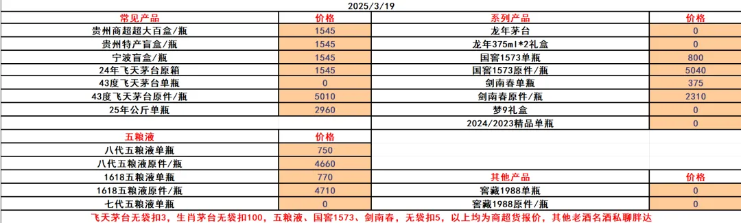 酒水主要为飞天茅台以及五粮液,范围还包括:国窖1573、剑南春等。购买酒水需注意是否包盲盒,以及要注意不要买到海外版本等。