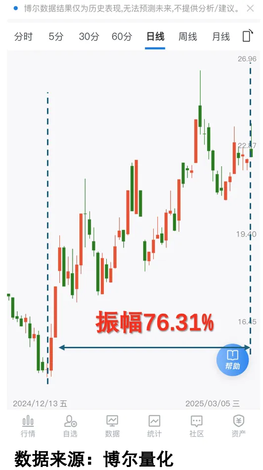 面对行情的波动,很多人很烦恼市场的这种反复震荡。就像大家看到的下面这只股票,也是如今很典型的一幕,上下波动非常频繁,回头看你会觉得只要一路拿着就可以,但事实上这段时间股价的波动幅度高达76%,换言之,多数人都在震荡中下车了。