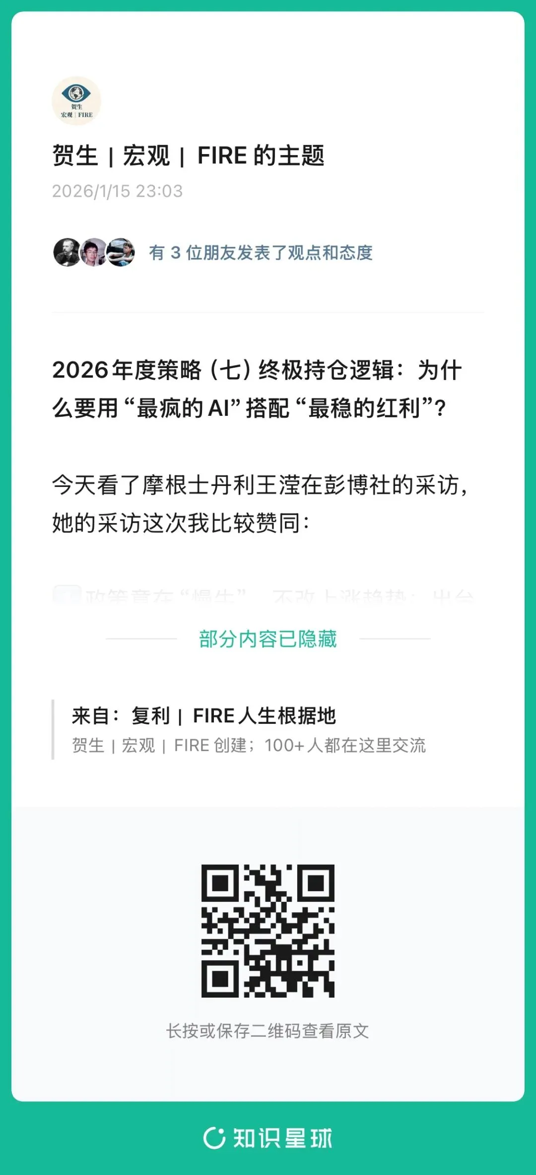 这也是为什么,我在1月15日就把今年最核心的一套持仓逻辑,写进了知识星球那篇年度策略里: