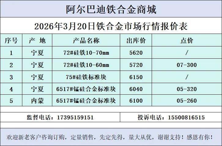 • 宁夏 75B 硅铁:5560(日环比 -40)