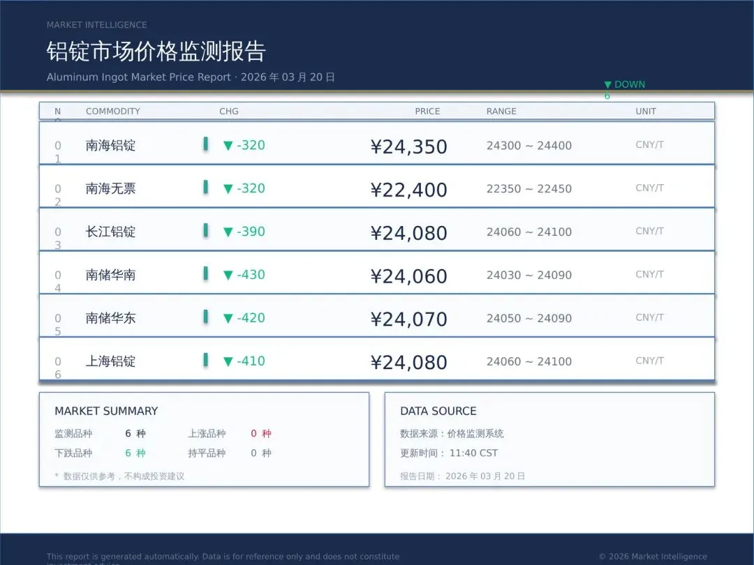 南海灵通铝锭价是华南地区铝材贸易定价基础,每日11:40左右由南方有色金属交易市场更新发布。