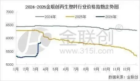 2026年3月12日,第十四届全国人民代表大会第四次会议通过了《中华人民共和国生态环境法典》,这是继民法典后我国第二部以"法典"命名的法律,也是世界上首部生态环境法典。就在法典通过前后,再生塑料市场经历了一轮上涨行情:金联创再生塑料价格指数从2月底的5296点涨至3月中旬的5840点,涨幅达10.24%。政策红利与市场行情形成共振,再生塑料行业迎来重要机遇期。