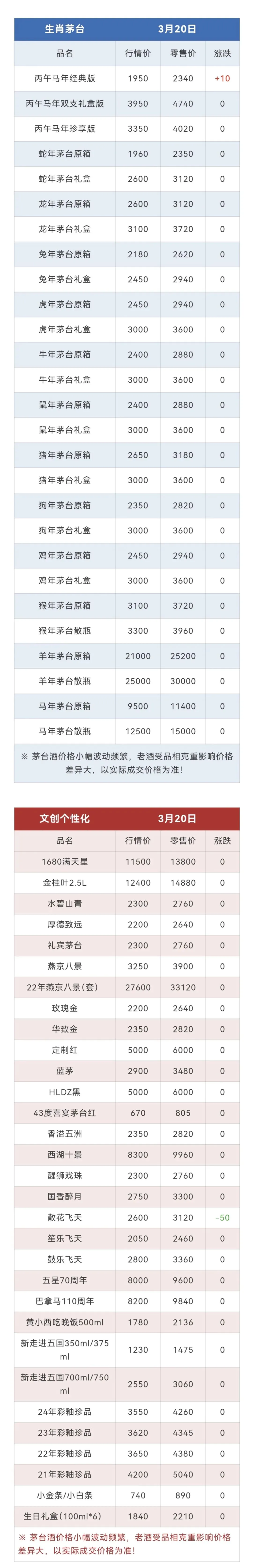 ※行情价:酒商调货价,不考虑物流运输人工成本,每个地区调货价有几十块浮动属正常现象。