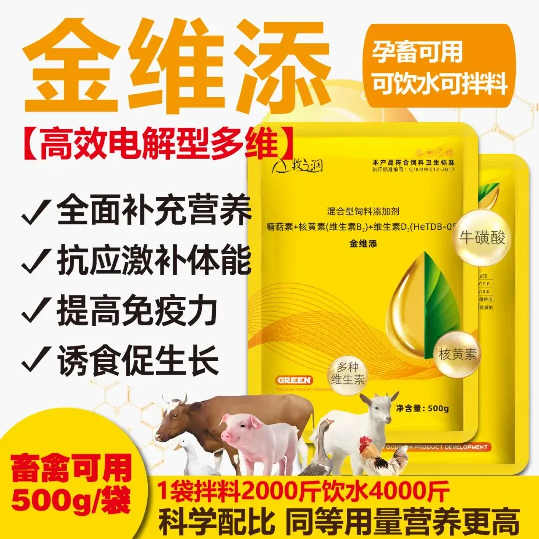 每个月添加用7-10天即可达到整月效果,全面补充猪群所需要的多种维生素,提高猪群的营养均衡度,快速提升机体免疫力,猪群定期添加金维添,猪群健康又安全!